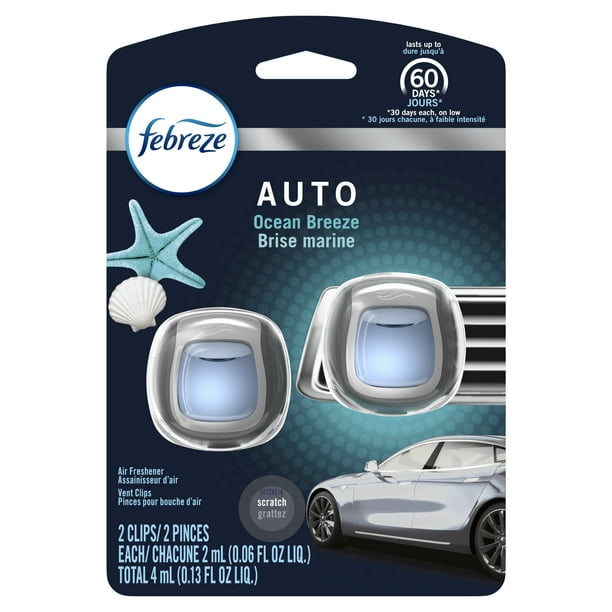 Febreze Auto Odor Eliminating Car Freshener Vent Clip Ocean Breeze 06 Oz 2 Pack Walmart Com